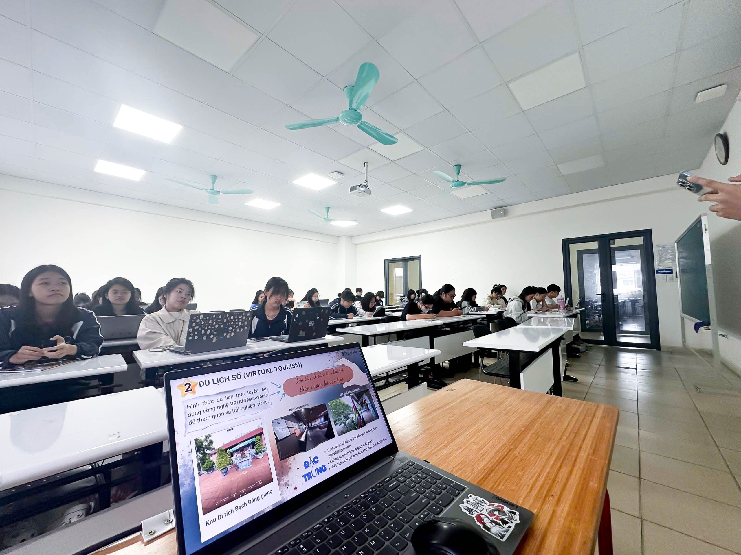 Trong buổi giảng, đội ngũ nhân viên từ YooLife đã chia nội dung liên quan đến các xu hướng công nghệ trong du lịch di sản, thảo luận về 3 loại hình du lịch, gồm: Du lịch thực tế, du lịch số và du lịch lai – một loại hình du lịch tiềm năng trong tương lai.